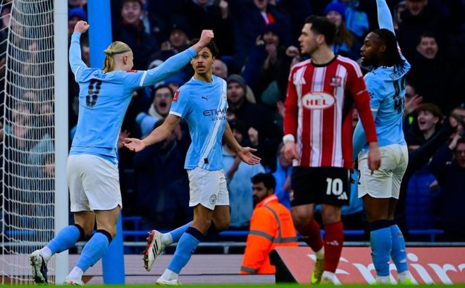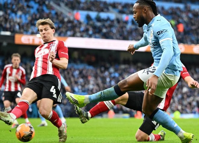 曼城在第12分鐘就取得了進球。馬克思-阿萊恩在門前混戰中把球打進。曼城取得夢幻般的開局。這粒進球讓曼城越踢越放松,進球源源不斷出現。第24分鐘,羅德里外圍遠射破門。羅德里時隔601天再次為曼城取得進球,太不容易了。6分鐘后,麥卡杜在右側帶球內切抽射遠角,踢偏了。